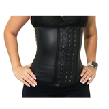Cinturilla Clásica Negra → Elaborada en látex expuesto, con 3 niveles de broches para un ajuste progresivo y personalizado. Ayuda a moldear la cintura, corregir la postura y brindar soporte lumbar.